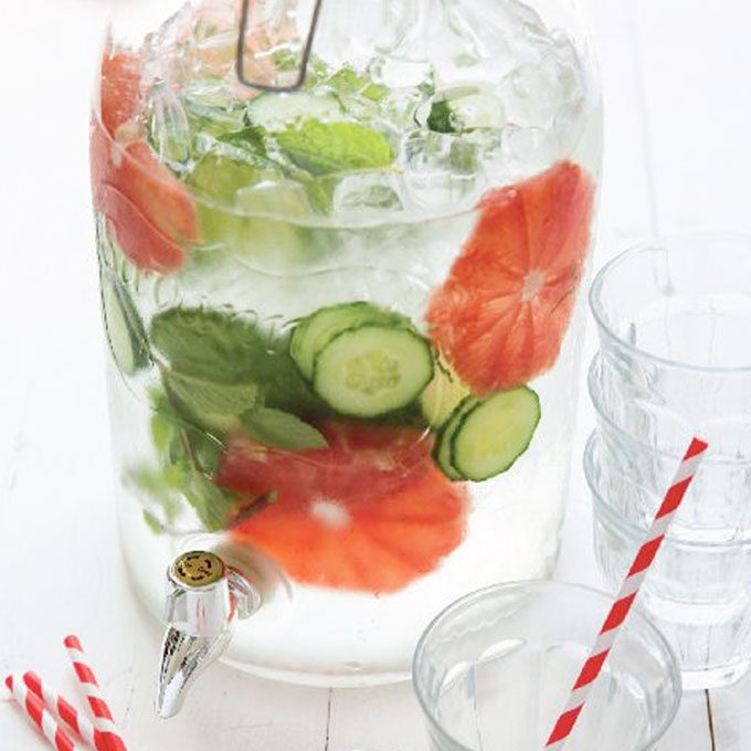 Cucumber, grapefruit, and mint come together to create a fruit and herb-infused water that will refresh all your guests, especially the-mom-to-be.