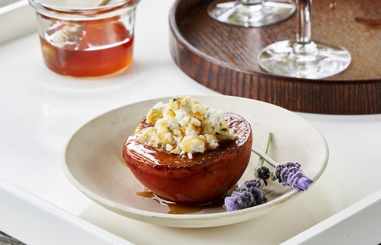 For the perfect mix of savory and sweet, check out this grilling recipe that effortlessly pairs Boursin Cheese, peaches and honey. Made with Garlic & Fine Herbs Cheese, a fresh peach and honey drizzle, it’s grilled until golden brown and garnished with lavender. This simple dish will take your cheese plate to the next level.