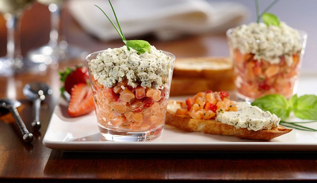 A fresh salmon and sweet strawberry medley topped off with the zesty flavors of Boursin.