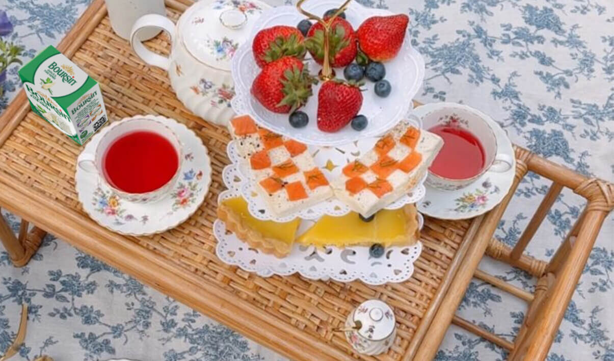 Impress your afternoon tea guests with an aesthetically beautiful smoked salmon and Boursin Garlic & Fine Herb checkerboard toast. This recipe was inspired by Ally Chen’s favorite Japanese cafe in NYC.